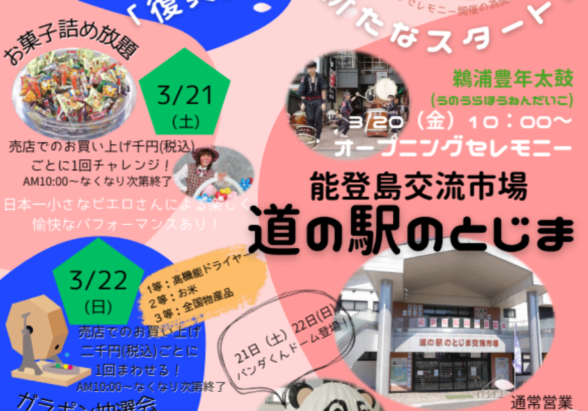 - 【3/20~3/22】道の駅のとじま・全館オープンイベント開催! 2026年3月18日